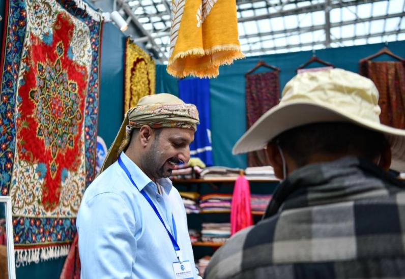 2023年6月18日,一名印度商人在销售印度特色商品。新华社记者晋美多吉摄